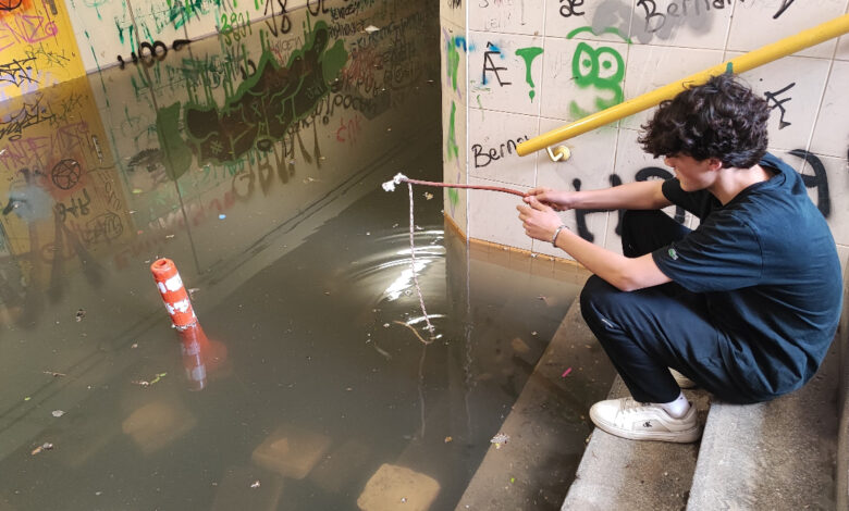 Belediyeye reaksiyon gösteren Mehmet Emin Kazan, alt geçitteki suya olta atıp balık avladı. Kazan şunları söyledi: