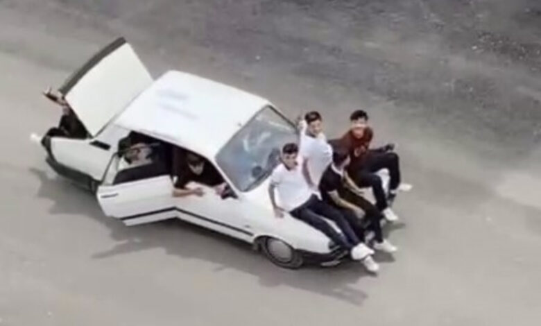 Adana’nın Merkez Yüreğir ilçesi Özgür Mahallesi’nin orta sokaklarında çekilen imajlarda, bir arabanın bagajında ve kaputunda çok sayıda çocuğun seyahat yapması dikkat çekti.
