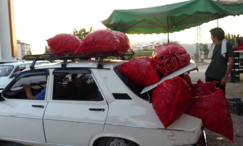 Adana Kozan’da vatandaşlar, salça yapmak için satın aldıkları biberleri taşımanın en kolay yolunu tekrar Toros ve eski model arabalarda buldu.