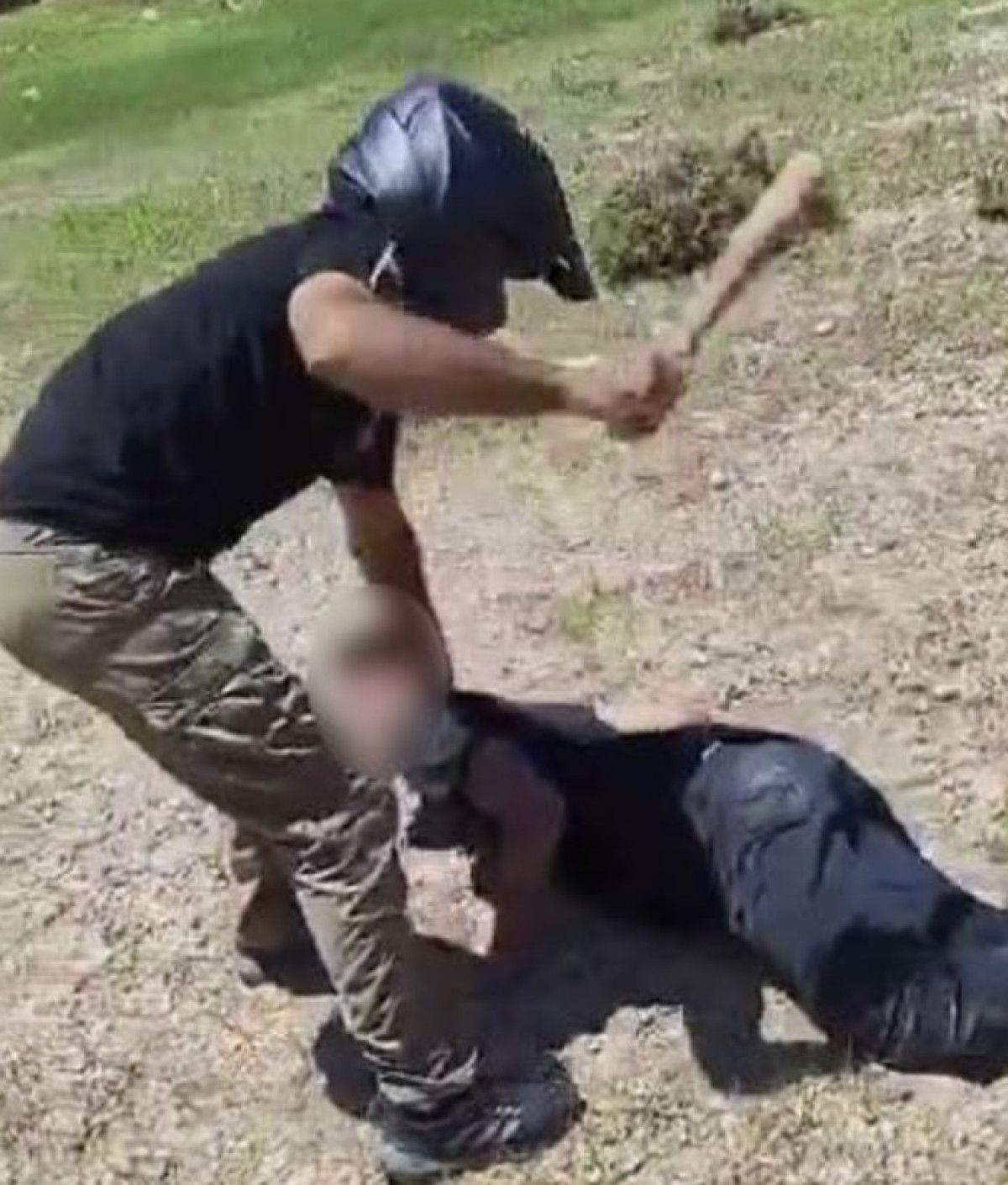 Yüzünü tanınmamak için kask ile gizleyen İ.A., gençleri sopayla acımazsızca dövdü.