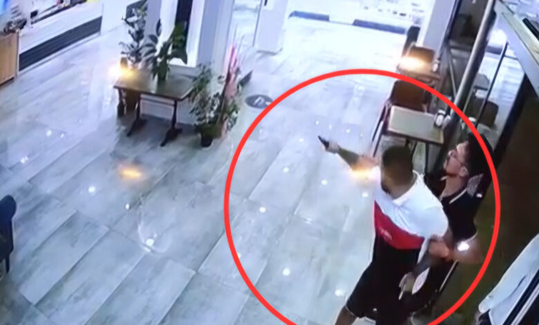 Olay anı, iş yerinin güvenlik kamerasına yansıdı.