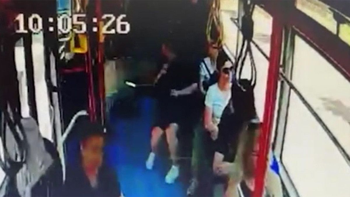 Otobüsteki tartışma anları ise aracın güvenlik kamerasına yansıdı.