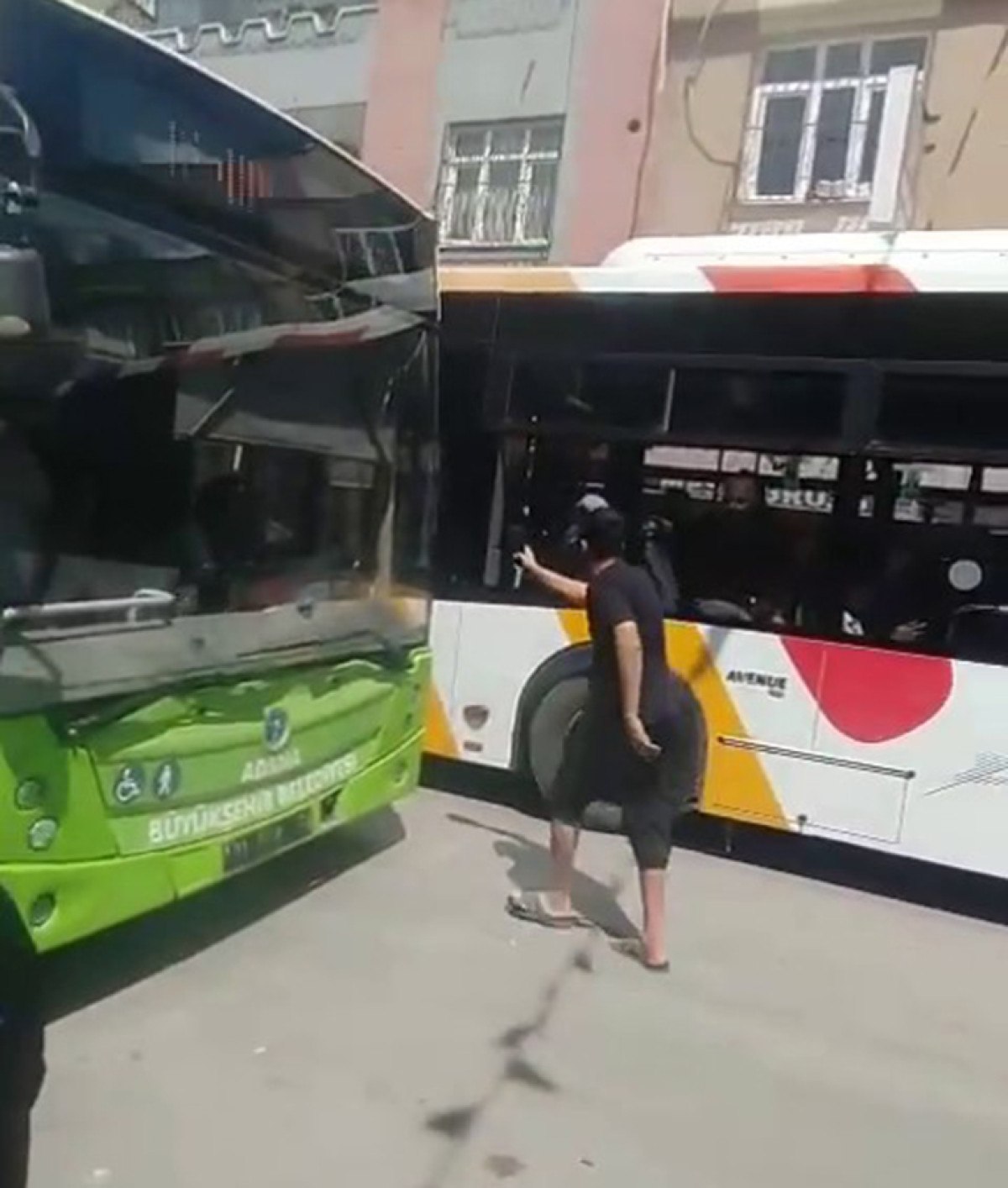 Adana’nın Seyhan ilçesindeki Kıbrıs Caddesi’nde kamyonetle zıt tarafa giren şahıs, karşı taraftan gelen belediyeye ilişkin otobüsle karşılaştı.