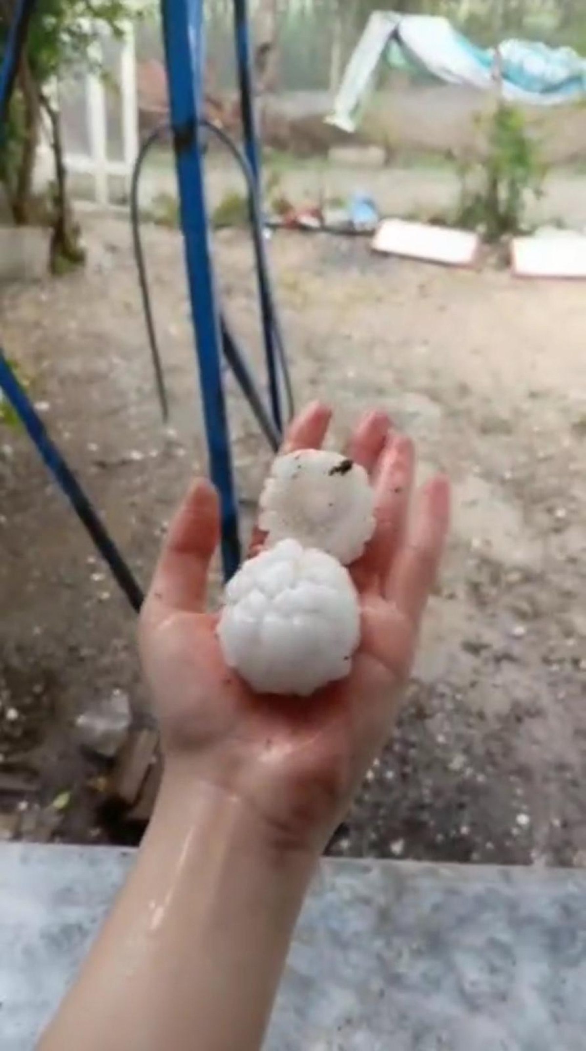 Şiddetli yağışı cep telefonuyla görüntüleyen bir bayan, “Gitti güzelim biberlerim, eserlerim, güllerim” dedi.