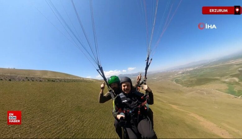 Adrenalin tutkunu Erzurum Valisi Çiftçi, yamaç paraşütüyle uçtu