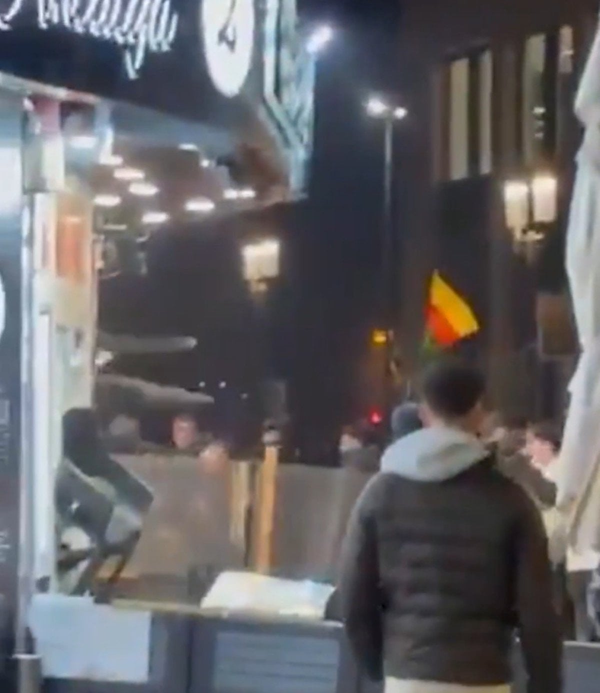 Taşkınlık çıkaran göstericiler polise havai fişek ve demir çubuklarla saldırırken, çıkan arbedede birkaç polis memuru yaralandı.