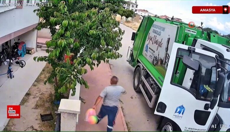 Amasya’da paklık personelleri, çöp kamyonunun kazara patlattığı toplarını kaybeden çocukları sevindirdi. Çalışanlar, kendi imkânlarıyla çocuklara yeni toplar alarak sürpriz yaptı.