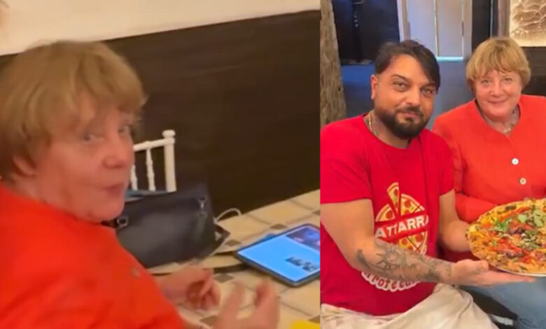 Napoli’de bulunan bir pizzacıya giden Merkel, kameralara poz verdi.