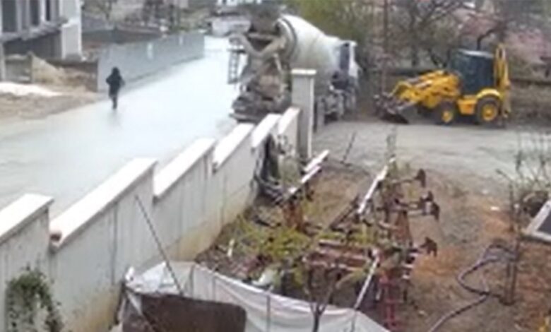 Ankara’nın Gölbaşı ilçesinde şoförünün park halinde bırakarak indiği beton mikseri, el freni tutmayınca hareket etti.