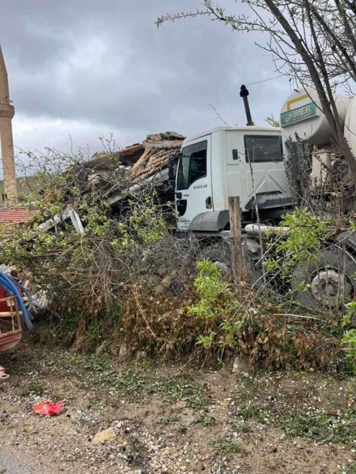 İlerleyen beton mikseri, müstakil bir konuta çarparak durabildi.
