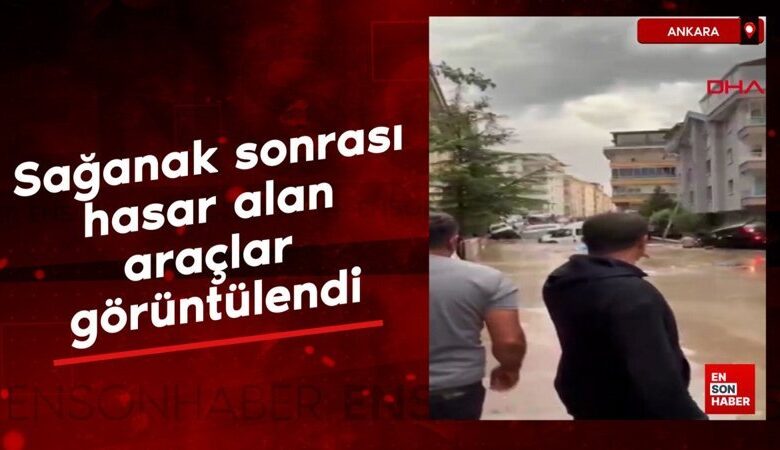 Ankara'da sağanak sonrası hasar alan araçlar görüntülendi.