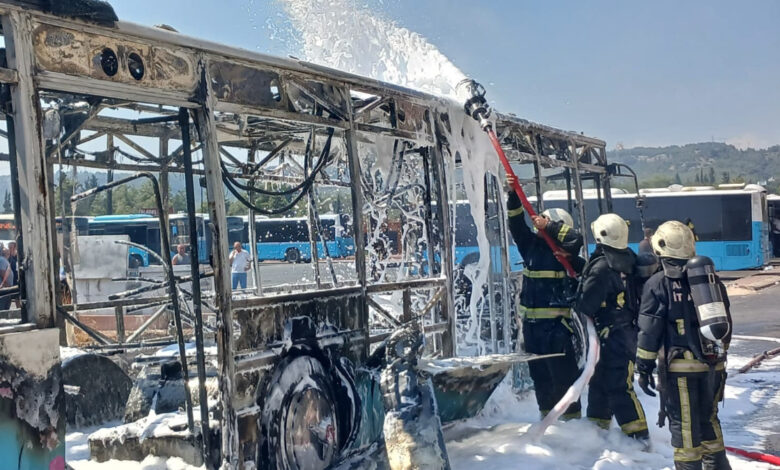 Antalya’da özel halk otobüsü park halindeyken yanarak küle döndü