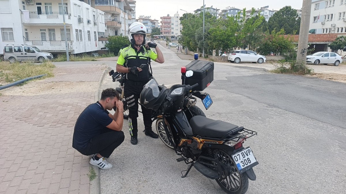 Polis takımı tarafından yapılan denetimde, 07 BVP 308 plakalı motosikleti kullanan Ebubekir K.’nin şoför dokümanının olmadığı belirlendi.