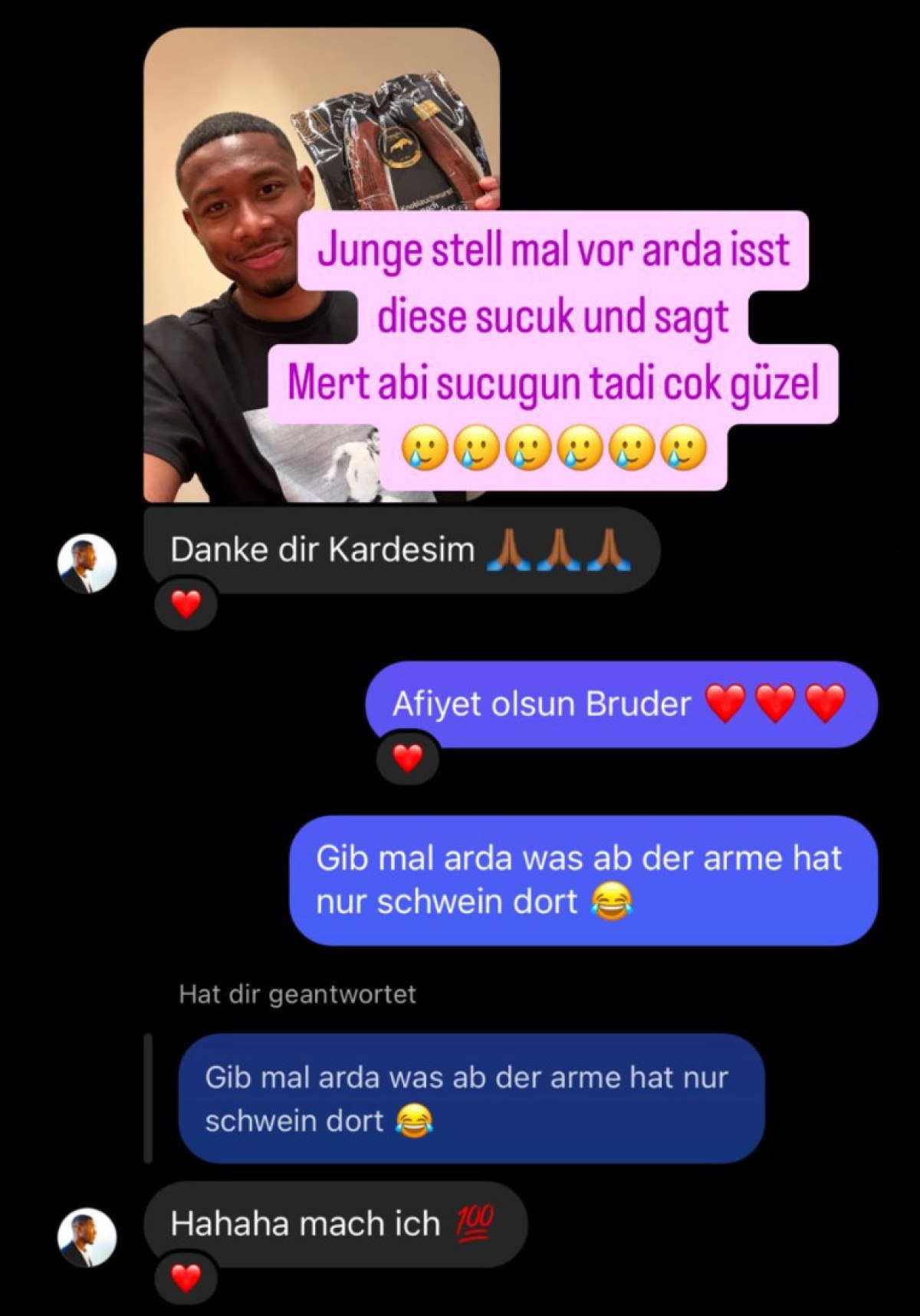 Öte yandan David Alaba’ya elindeki sucuğun Almanya’dan geldiği öğrenildi.