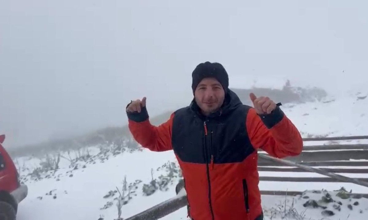 Dağdaki Aşağıkoyunlu Yaylası’nda kar kalınlığı 10 santimetreye ulaştı.