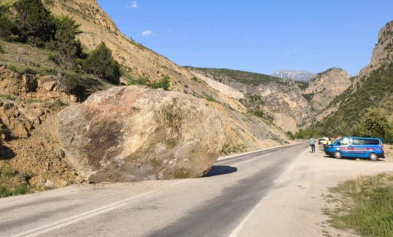 Kayanın yola yuvarlandığı sırada yoldan araç geçmemesi büyük bir faciayı önledi.