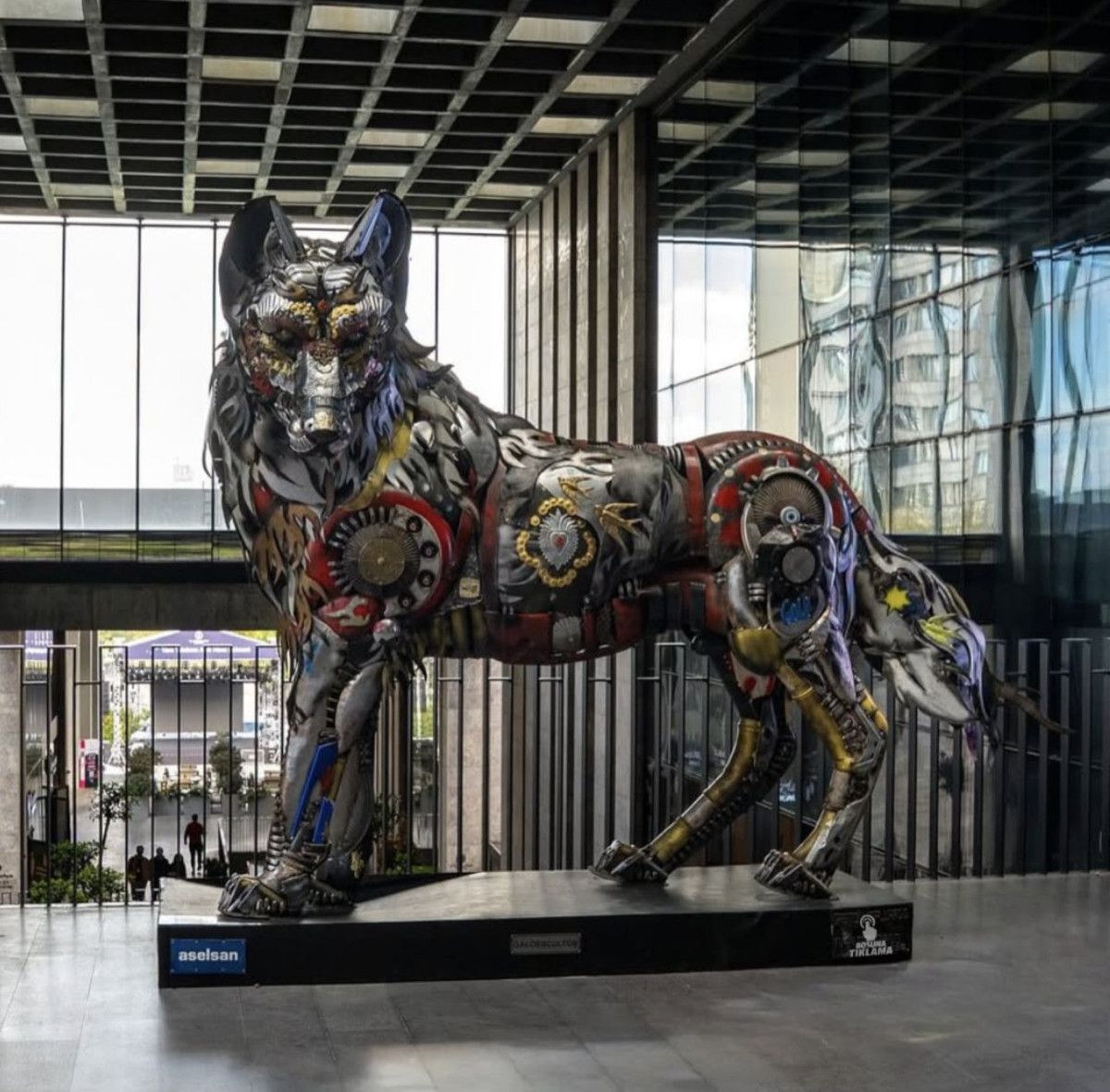 ASELSAN’ın silah üretiminden arta kalan gereçlerle yaptırdığı Bozkurt heykeli, Atatürk Kültür Merkezi’nde sergilenmeye başlandı.