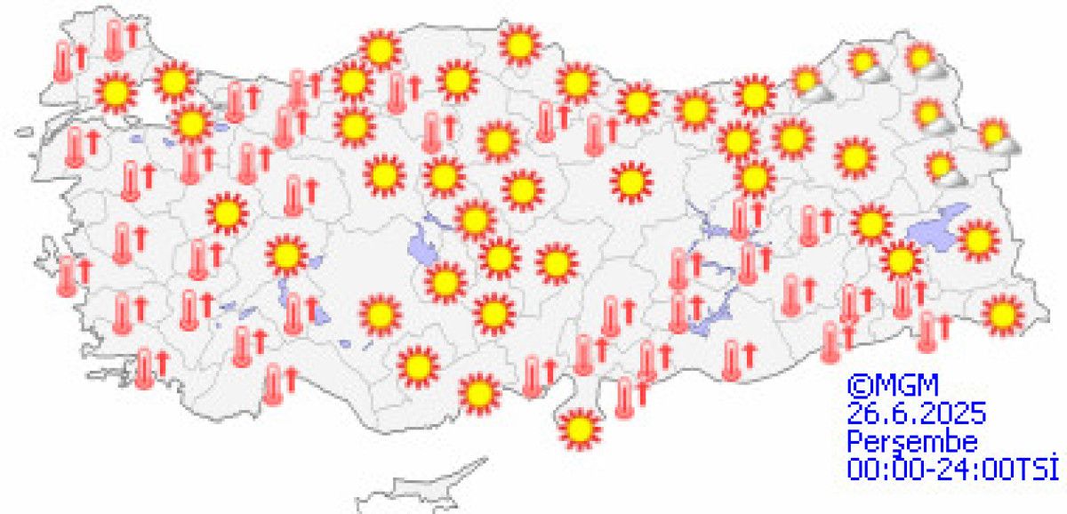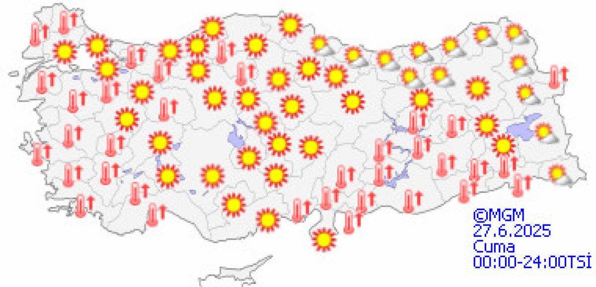 26 ve 27 Haziran’da Türkiye’nin büyük kısmında sıcaklıkların 30-35 derece ortasında seyredeceği ve güneşli bir havanın hakim olacağı görülüyor.