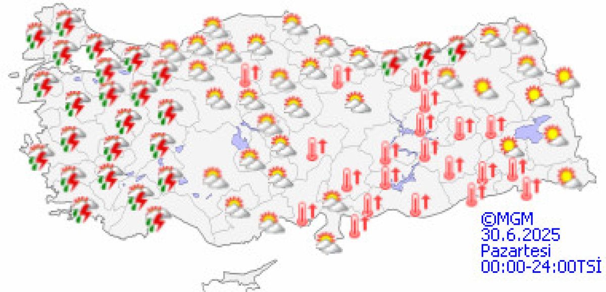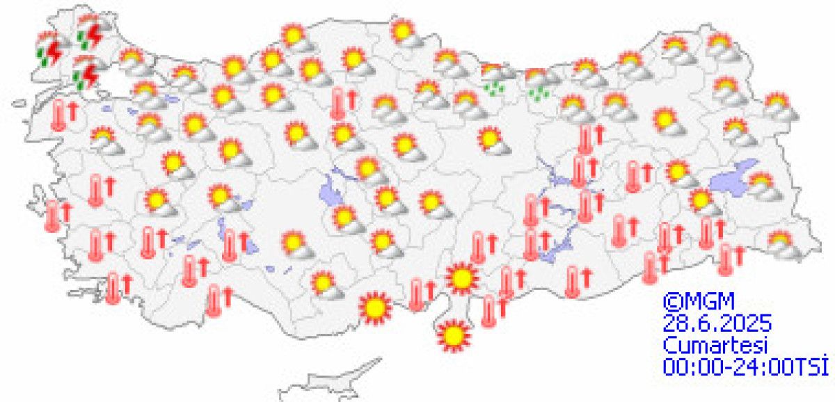 Pazar günü (29 Haziran) ise bu bölgelerde gök gürültülü sağanaklar ve yer yer dolu riski ön plana çıkıyor.