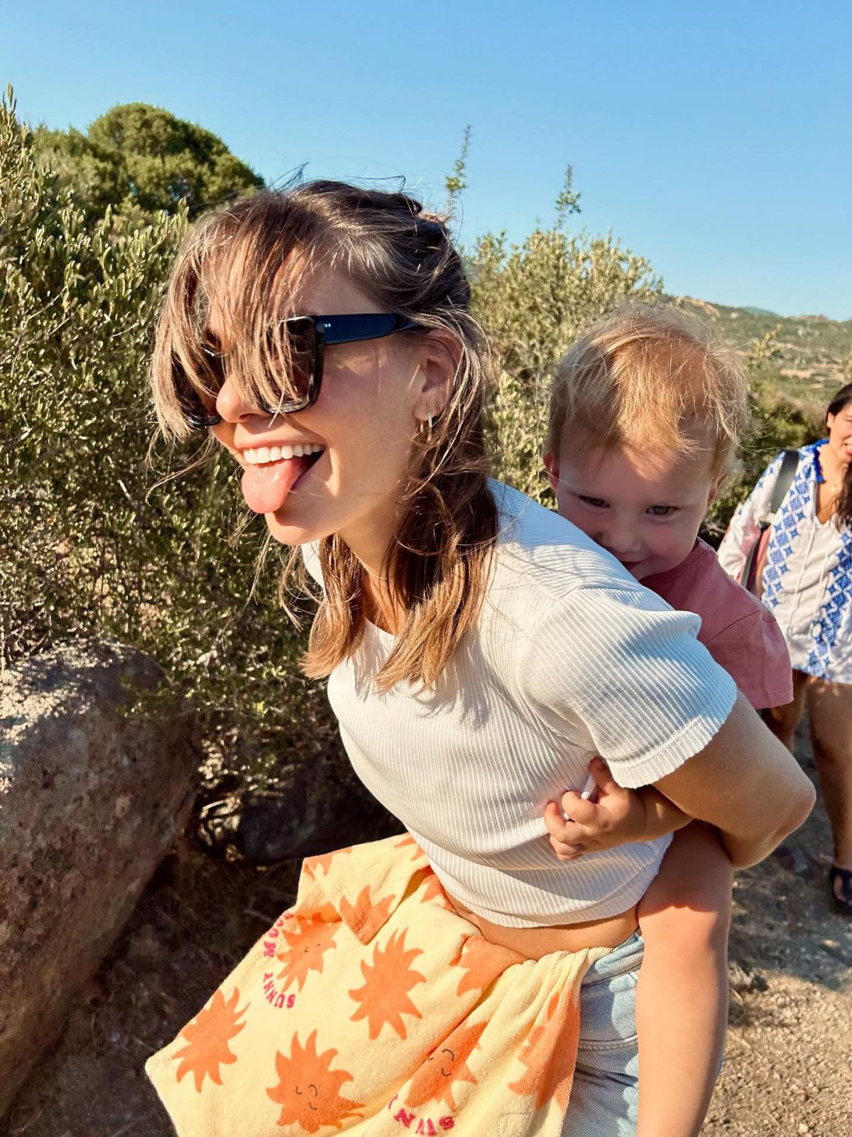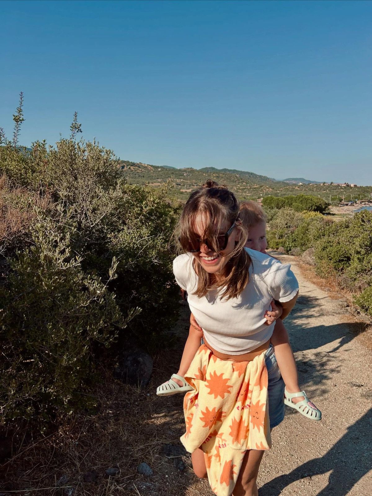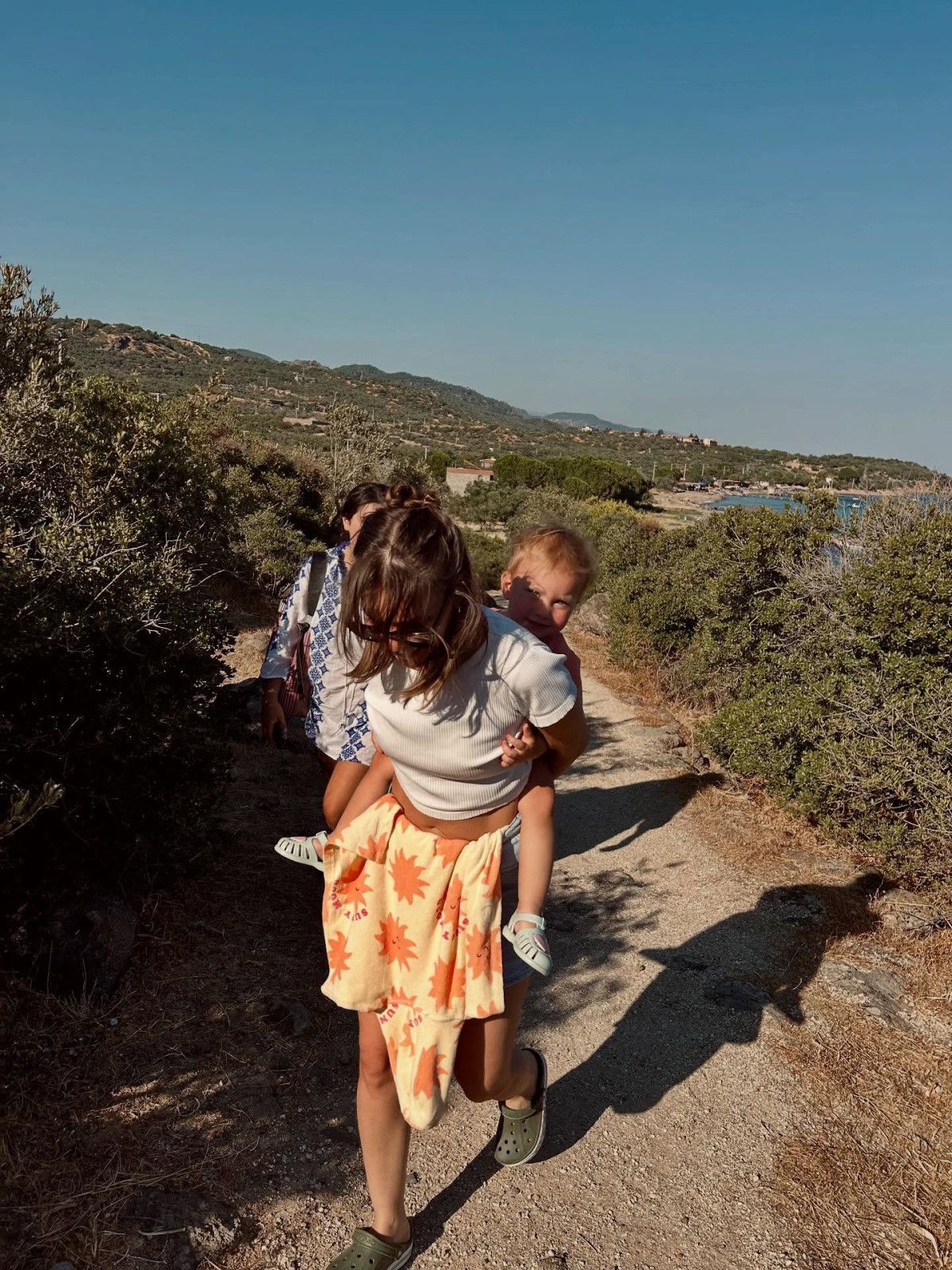 Aslı Enver’den çocuklu yeni paylaşım! Kızını sırtında gezdirdi