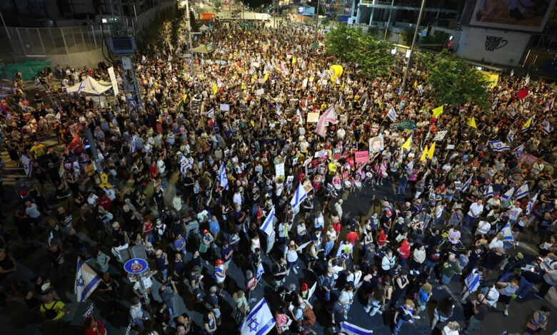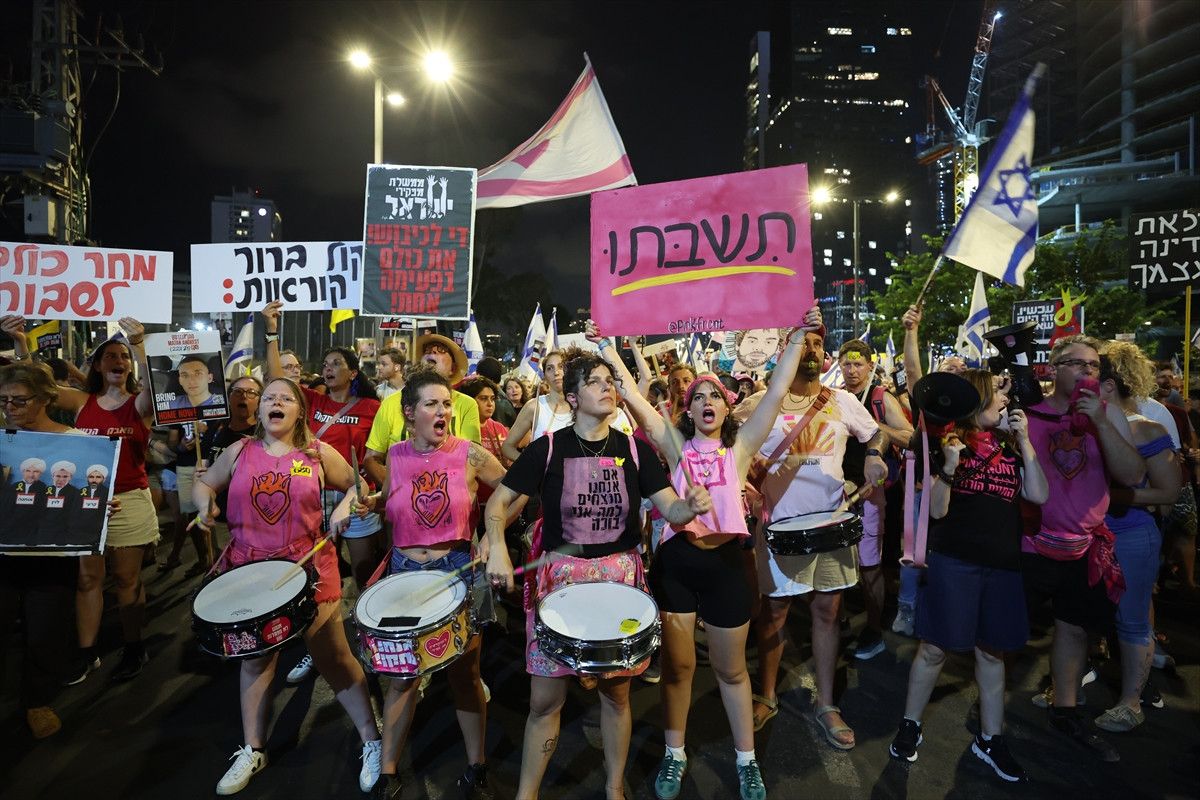 Ülke genelinde binlerce İsrailli, İsrail’in Gazze’deki savaşı sona erdirmek ve kalan tüm rehinelerin özgür bırakılmasını sağlamak için kapsamlı bir muahedeye varmasını talep eden protesto şovlarına katıldı.