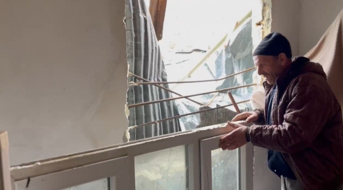 Evinin durumunu telefonun ucundaki komşusuna anlatan vatandaş, “Ali yaylaya bak yaylaya. Sağlam bir şey koymamış. Ali’m koltuklarımız gitti. Televizyon ikiye bölünmüş, senin televizyon daha çok kırık. Ali, Ali, Ali tavanda kaldı Ali.” diyerek, hasarın ne derece büyük olduğunu göstermeye çalıştı.