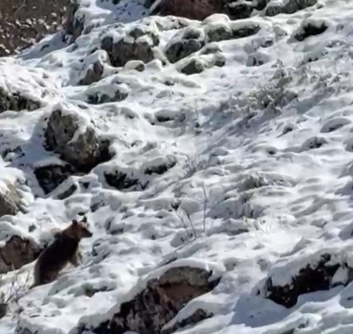 Dışarı çıktığında bir ayının koşarak kaçtığını gören vatandaş, cep telefonu ile ayıyı görüntüledi.