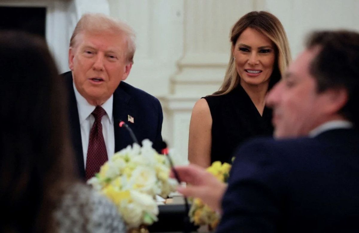 Trump’ın geçen hafta yenilettiği Beyaz Saray Gül Bahçesi’nde verilen yemeğe, First Lady Melania Trump da katıldı.
