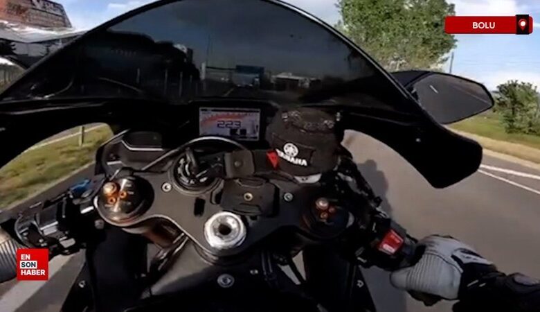 Bolu'da motosiklet şoförü 236 kilometre süratle tek teker üzerinde gitti