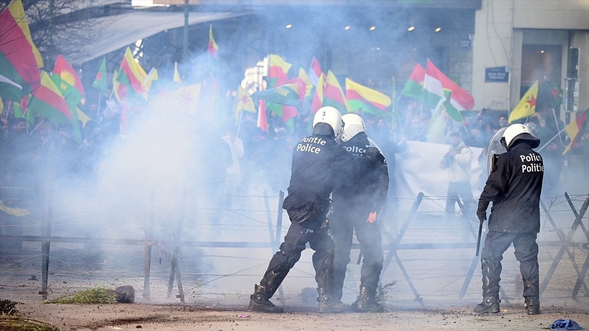 Belçika’nın başşehri Brüksel’de taşkınlık çıkaran bir küme terör örgütü YPG/SDG yandaşı, polisin sert müdahalesiyle karşılaştı.