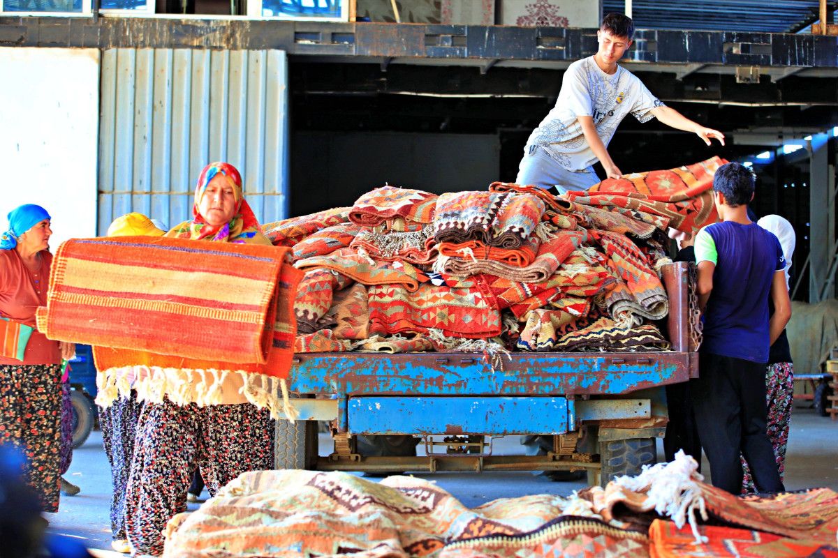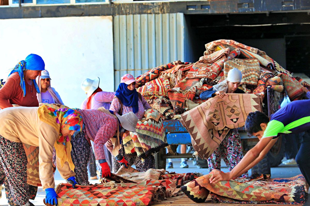 Döşemealtı’nda kışın buğday ekilen tarlalarda, bu sefer mahsul değil pahası milyonları bulan el dokuması halı ve kilimler hasat edildi.