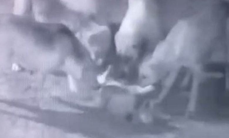Yaklaşık 6 sokak köpeğinin bahçeye girerek saldırdığı köpek, kısa müddette telef oldu. Yaşananlar, konutun güvenlik kamerasına saniye saniye yansıdı. Manzaralarda sokak köpeklerinin bahçeye girdiği, bağlı haldeki köpeğe saldırdığı ve akabinde olay yerinden uzaklaştığı görüldü.
