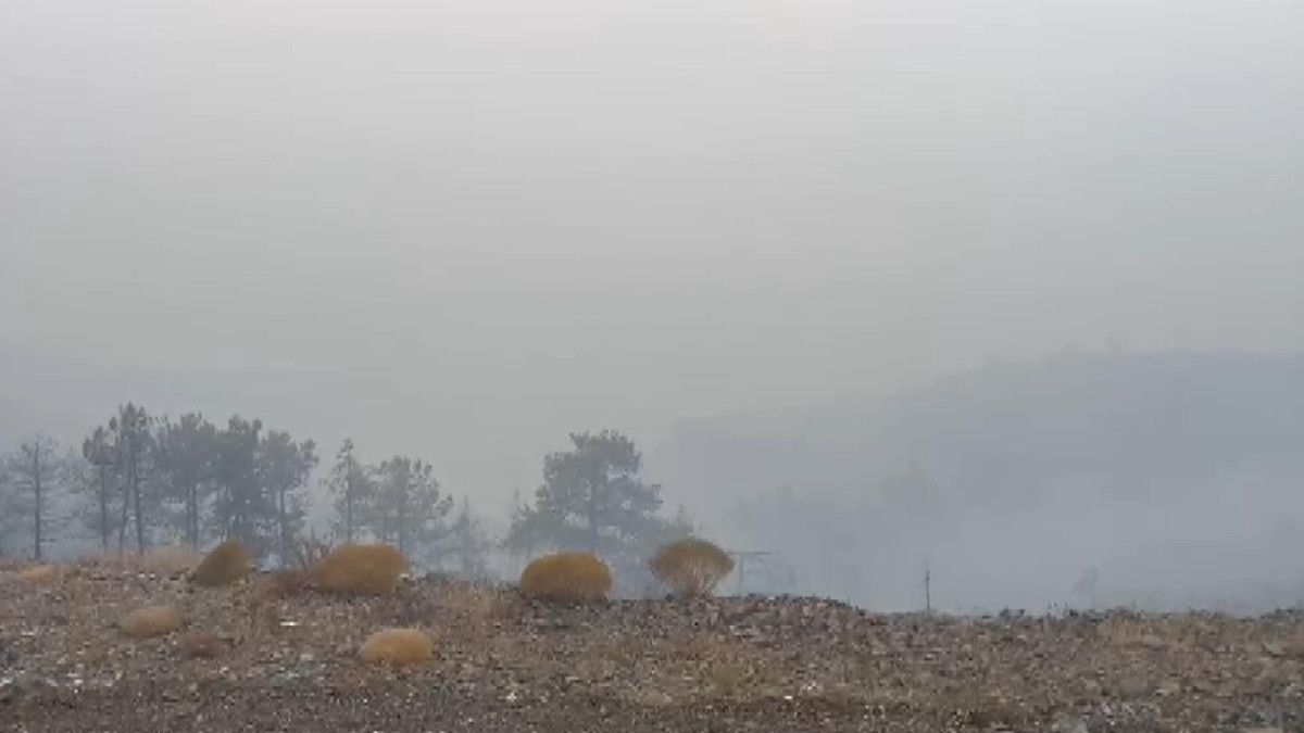 Ancak rüzgarın olmaması nedeniyle yükselen dumanın bölgede adeta sis katmanı oluşturduğu görüldü.