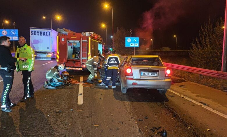 Bursa’nın İnegöl ilçesi Kulaca Mahallesi’nde Muhammed C. idaresindeki araba, kara yolunda birebir istikamette seyreden A.G. (30) yönetimindeki kamyona geriden çarptı.