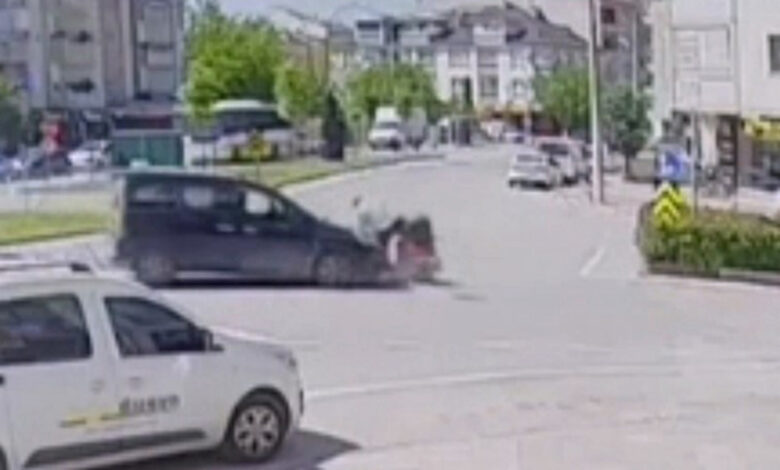 Bursa’da motosikletli muhtarın karıştığı kaza kamerada