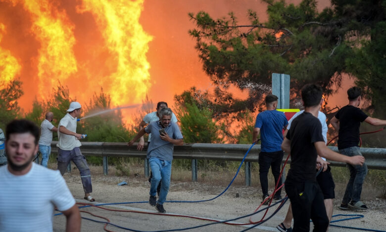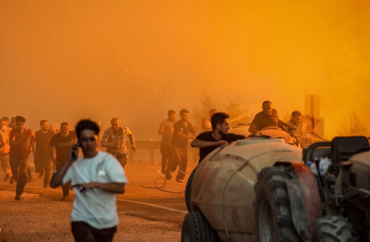 Bu sırada vatandaşlar rüzgarın tesiriyle büyüyerek üzerlerine gerçek yönelen alevlerden kaçtı.