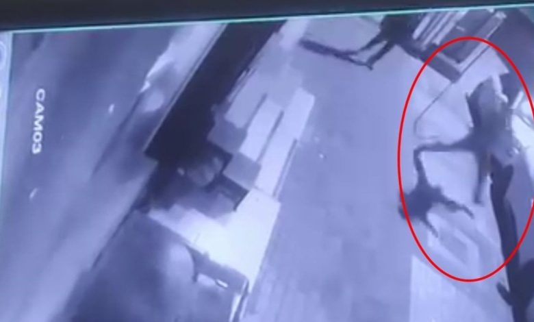 O anlar, bir iş yerinin güvenlik kamerasına yansıdı.