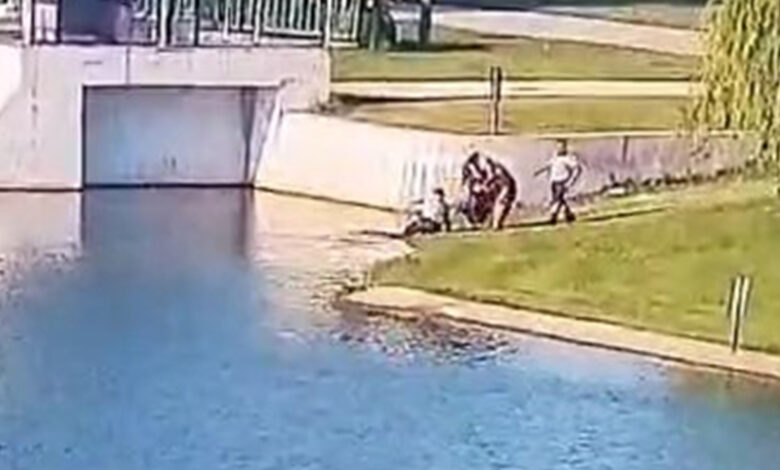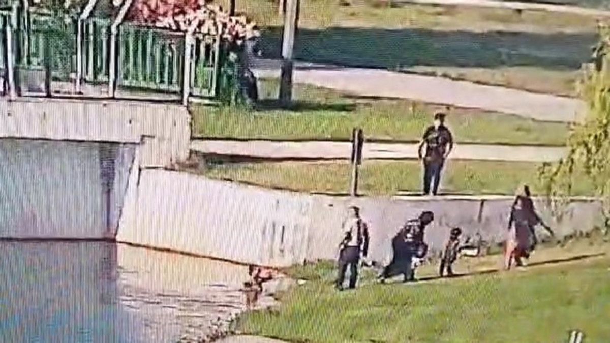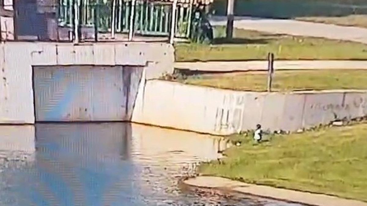 İlk evvel çocuğu yakalamaya çalışan güvenlikçi daha sonra uzunluğuna kadar gelen suya girerek çocuğu kurtardı.