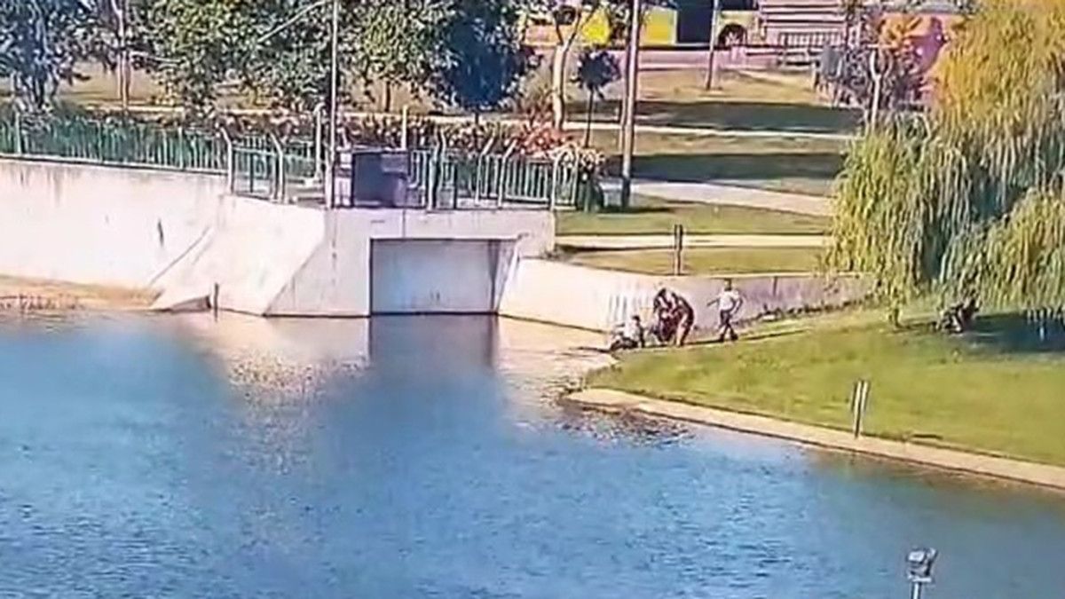 Parkın içerisinde güvenliği sağlayan Bursa Büyükşehir Belediyesi özel güvenlik işçisi de çocuğun suya düştüğünü görmesiyle koşarak geldi.