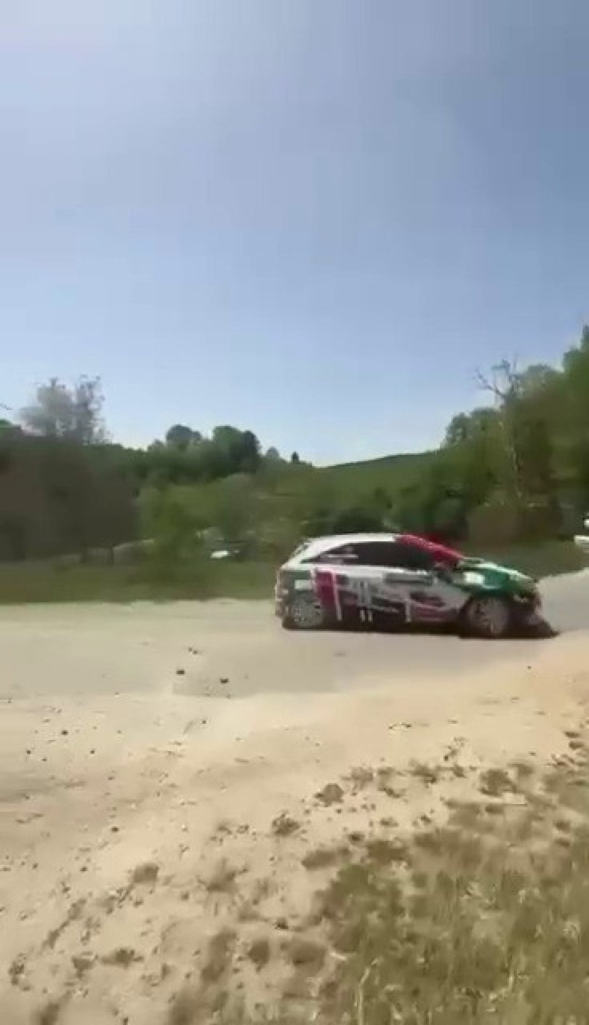 Ufak çaplı kaza sonrası ralli pilotu aracıyla tekrar piste dönüp uğraşa devam etti.