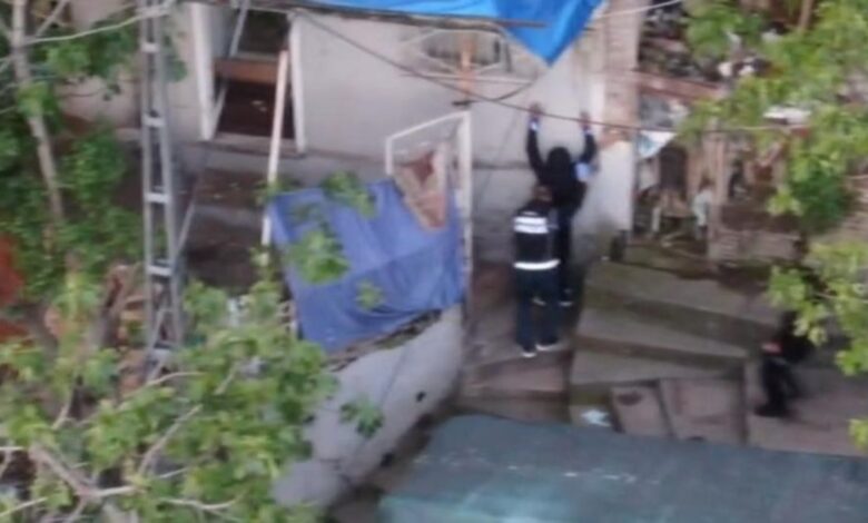 Şafak vakti yürütülen eş vakitli operasyonda kapılar koçbaşlarıyla kırıldı.