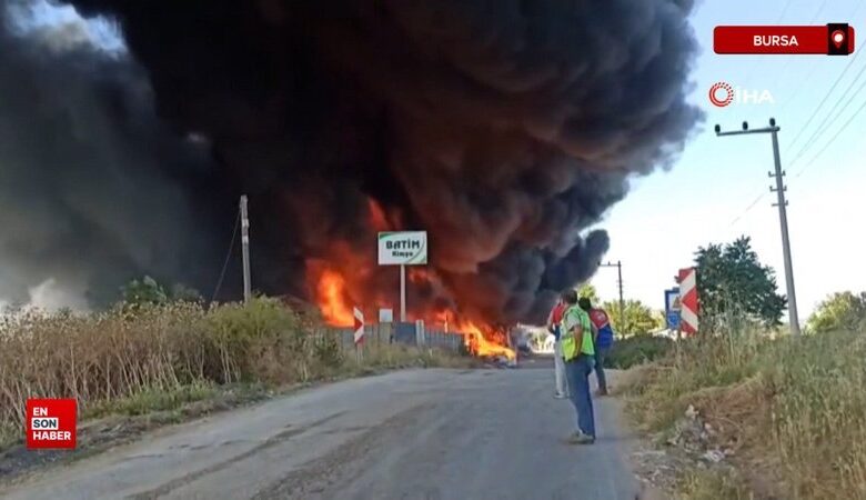 Bursa’nın Mustafakemalpaşa ilçesinde plastik fabrikasındaki yangında alevlerin ortasında kalan Türk bayrağını etrafta güvenlik tedbiri alan sivil polisler ve arama kurtarma grupları kurtardı.