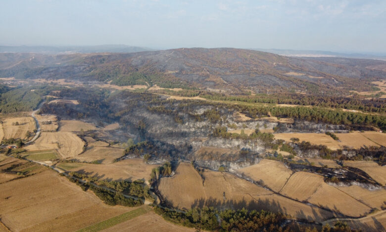 Çanakkale’deki yangın sonrası oluşan hasar havadan görüntülendi