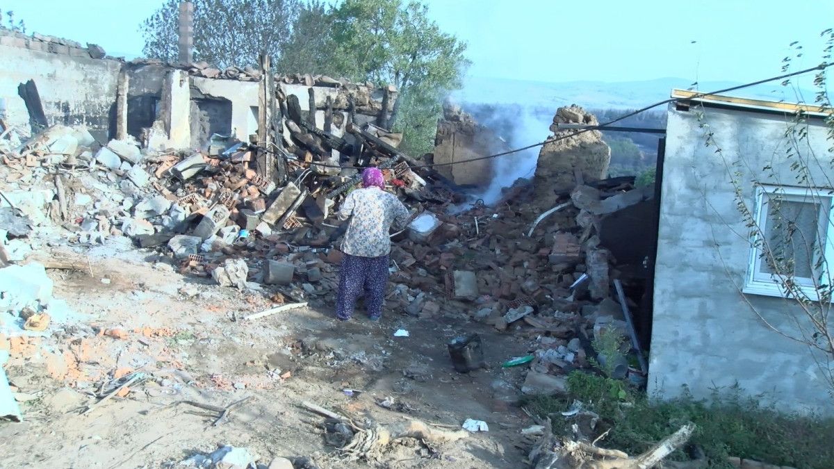 Bayramiç yangınında konutunu kaybeden Faize Soran, sabah saatlerinde geldiğinde gördüğüne inanamadı.