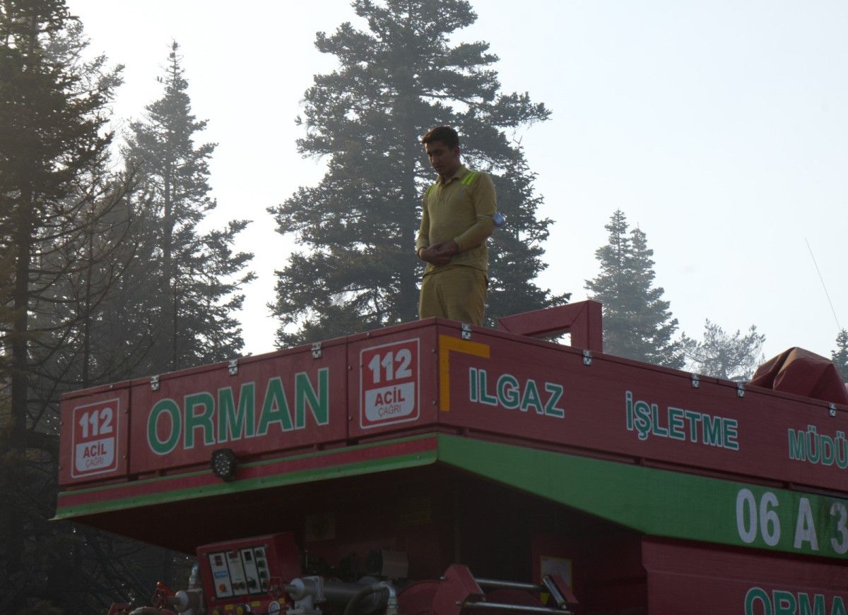 Çankırı’da orman yangını ile mücadele: Araç üzerinde namazını kıldı