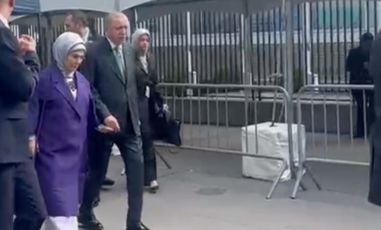 Cumhurbaşkanı Erdoğan ile Emine Erdoğan’ın el ele BM binasına geldiği anlar anbean kameralara yansıdı.