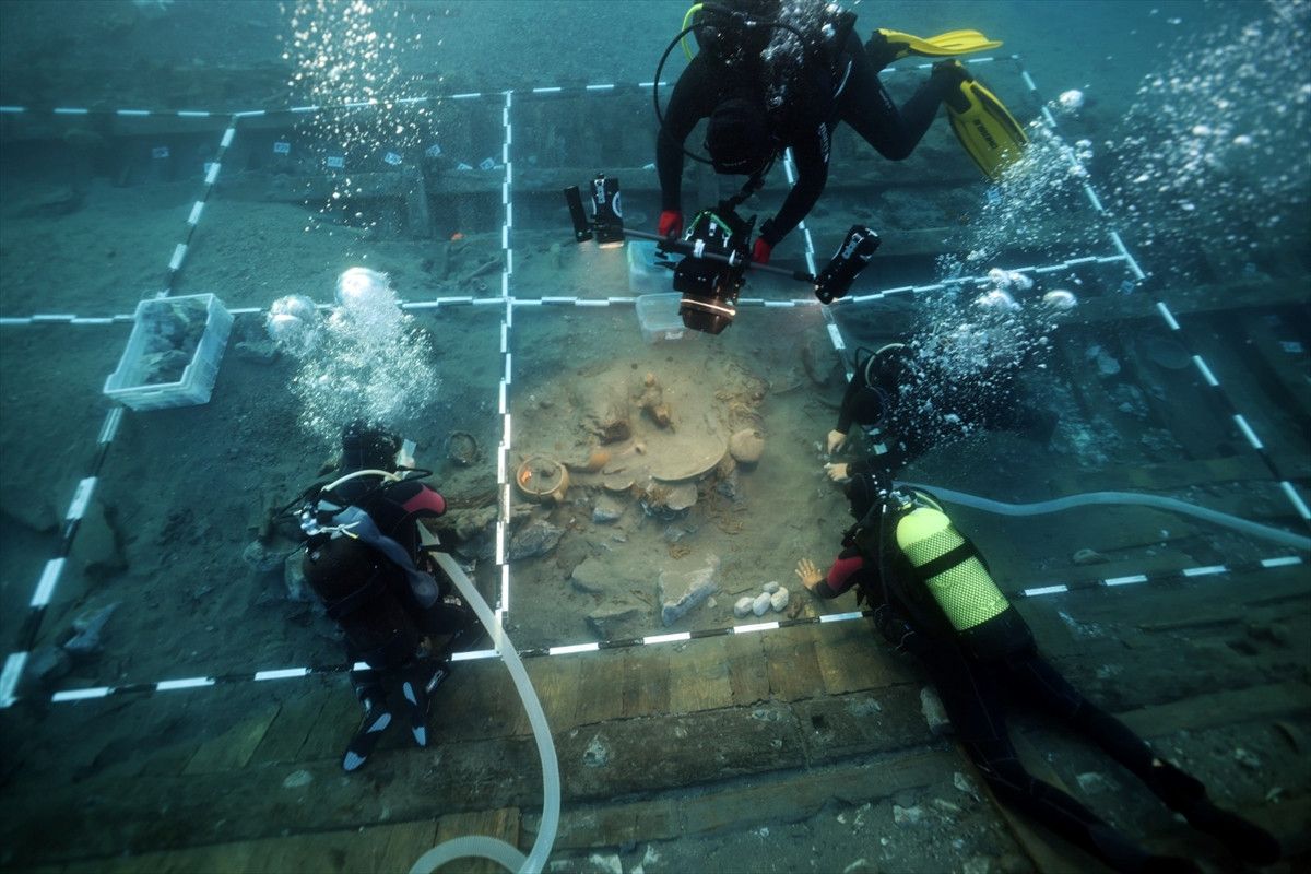 Anadolu Ajansı takımı, sabah brifingleriyle başlayan ve akşam geç saatlere kadar süren titiz çalışmaları su altında görüntüledi. Dalgıçlar, sığ sularda olmaları sayesinde günde iki dalış yaparak uzun mühlet inceleme fırsatı buluyor.