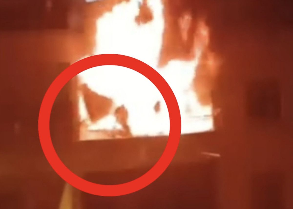 Öte yandan, yangında babanın çocuğunu kurtardığı anlar ise cep telefonu kamerasına yansıdı.