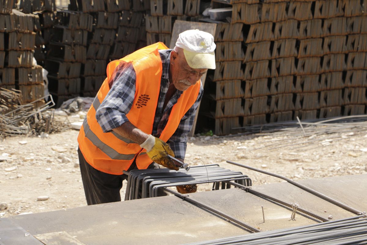 Duvar ustası Fevzi Porsuk, 60 yaşında olduğunu, havaların sıcak olduğunu söz etti. Porsuk, “Alışkınız ve mecburuz çalışmaya.” dedi.