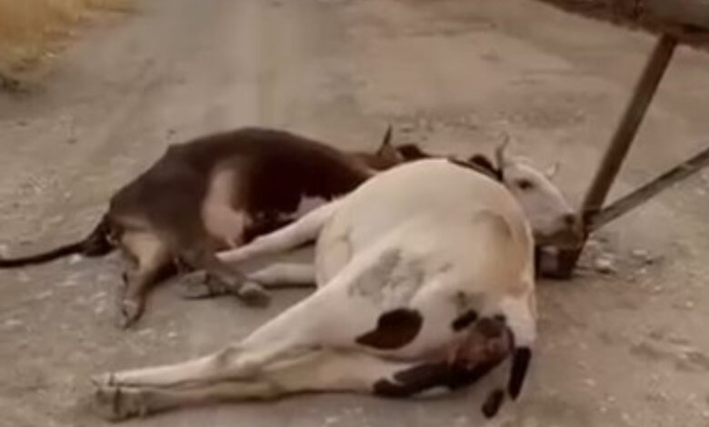 Devrilen direğin telleri yoldaki ineklerin üzerine düştü.